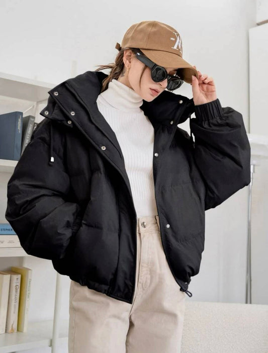 BLACK HOODED PUFFER JACKET