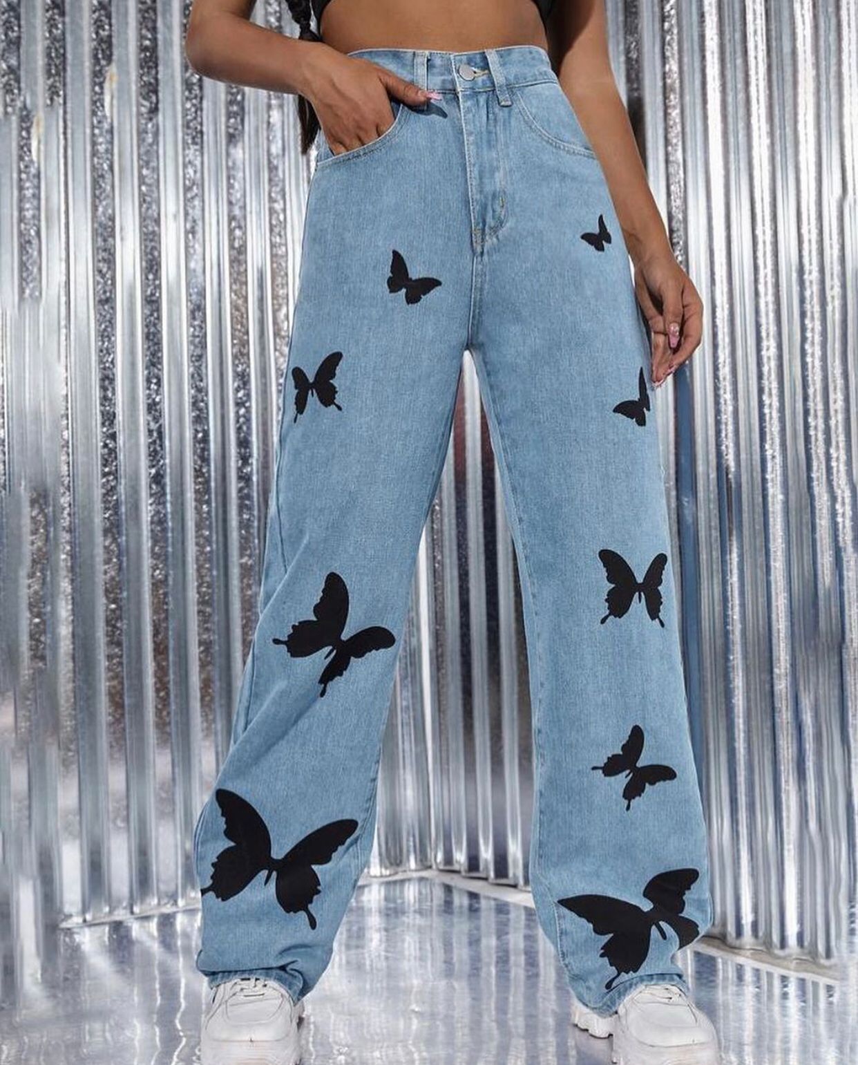Lite Wash High Waist Butterfly Jeans